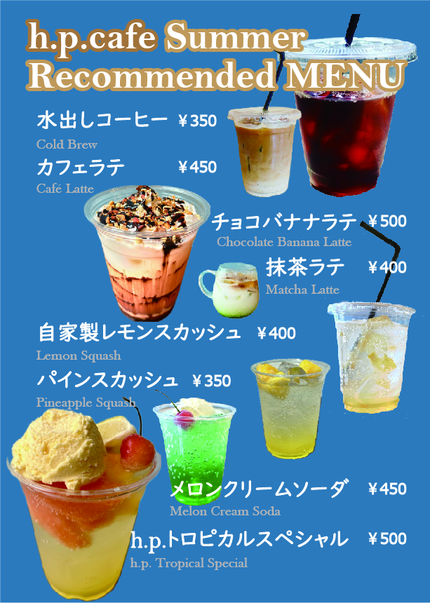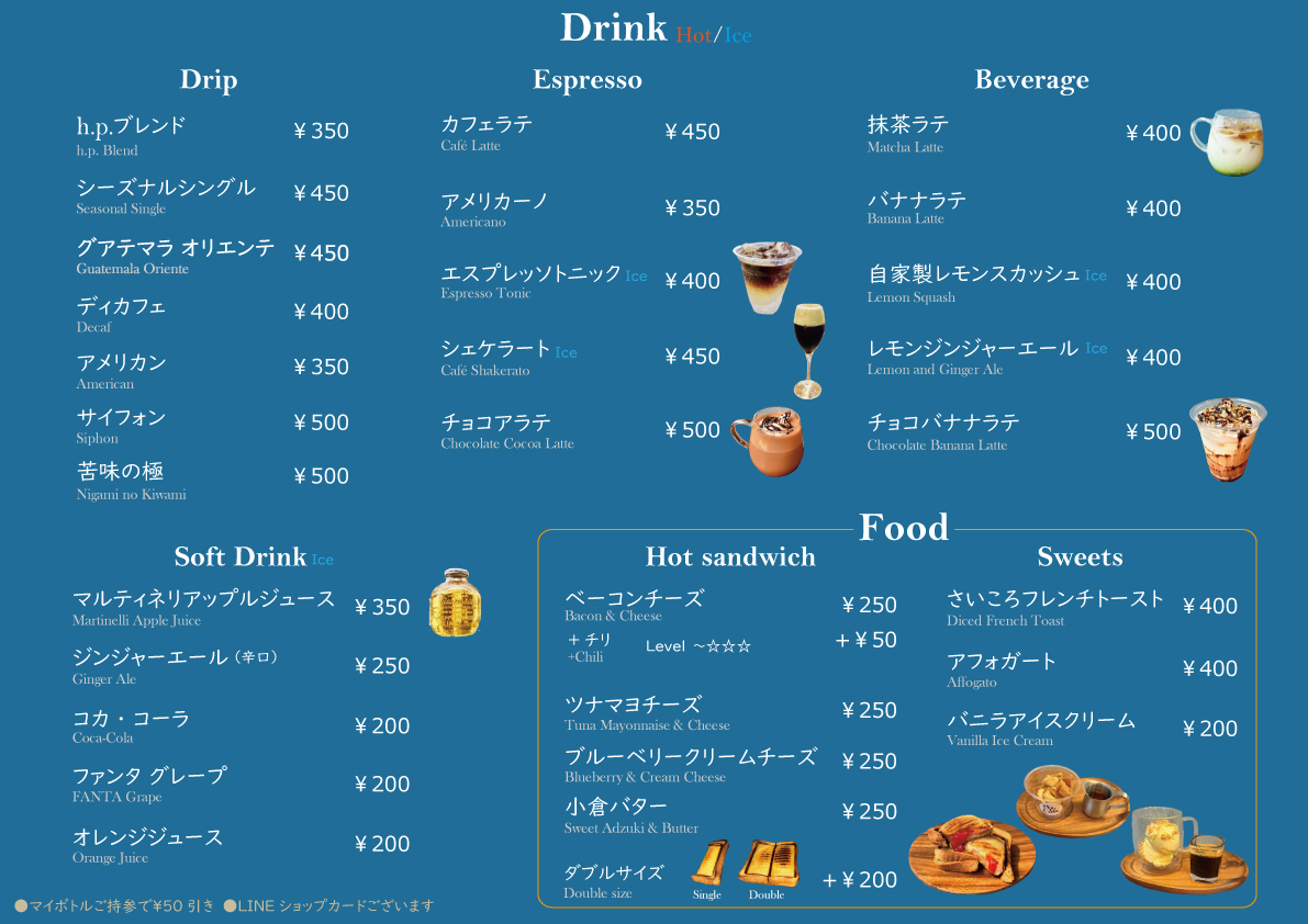 生徒さんは割引もありますので、レッスン後のひと時にもぜひどうぞ。